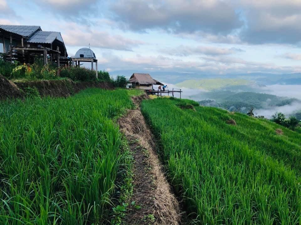 ภูเขา ต้องที่นี้เลย “บ้านป่าบงเปียง” กระท่อมหลังน้อยรายล้อมด้วยทุ่งนาขั้นบันไดและภูเขาเขียวขจี โชคดีอาจเจอหมอกมาลอยต่ำๆให้เราได้สัมผัสด้วยน๊า